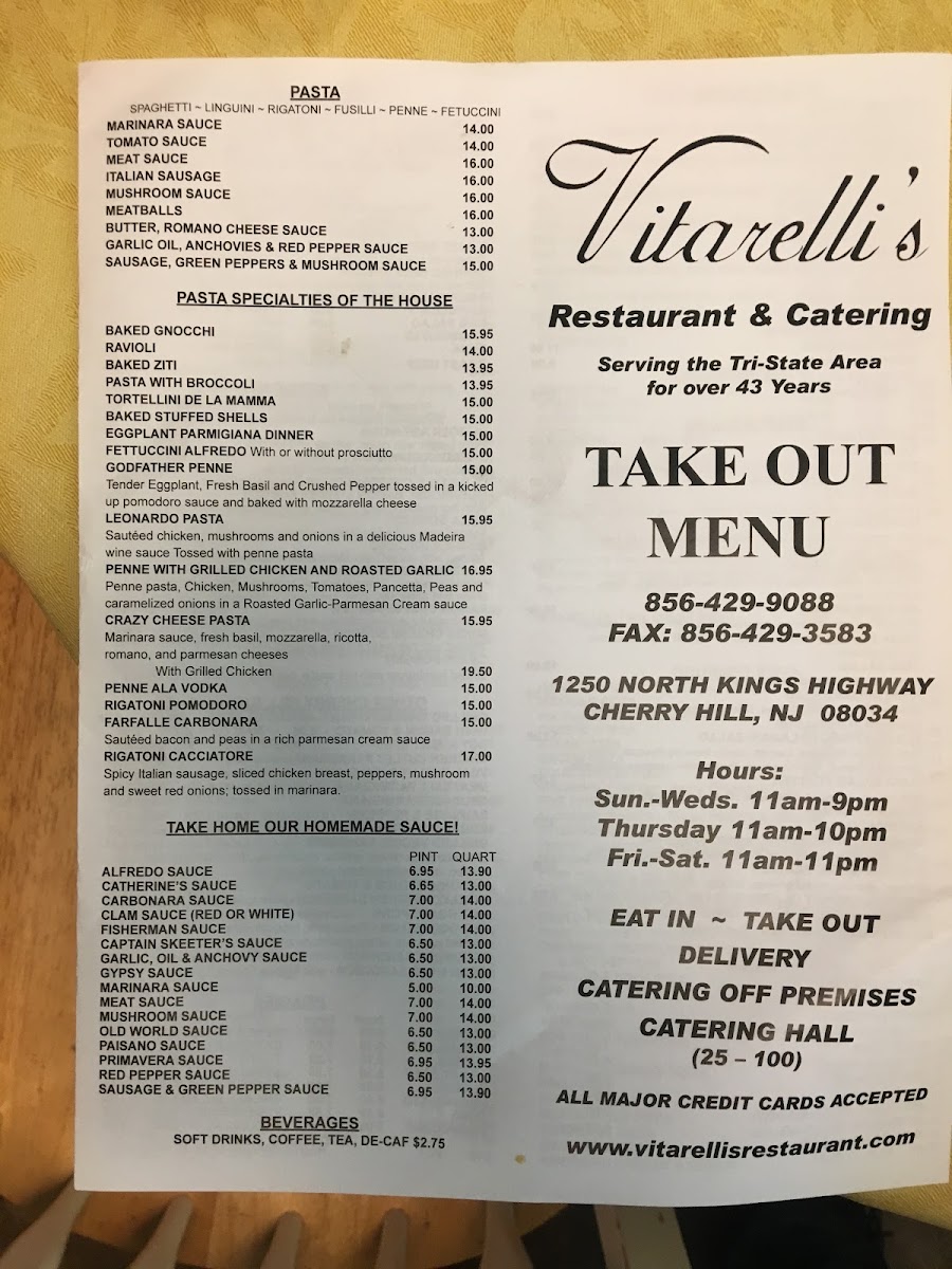 If you're in the mood for a delicious meal in Cherry Hill Township, look no further than Vitarelli's Pizza & Restaurant Menu. Whether you're craving a classic pizza with a crispy crust or something a little more unique, this menu has you covered. With a variety of mouthwatering options, from hearty pasta dishes to savory sandwiches, there's something for everyone. Don't forget to try their signature pizzas, made with fresh, high-quality ingredients that keep guests coming back for more. For those looking to explore, the menu also features tempting appetizers and delectable desserts, perfect for rounding off your meal. So, take a seat and enjoy a meal that's sure to satisfy every craving.